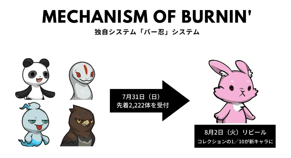 二次創作元のCrypto Ninja Partnersや、関連プロジェクトのCNP Jobsについても同じシステムで転生が行われています。